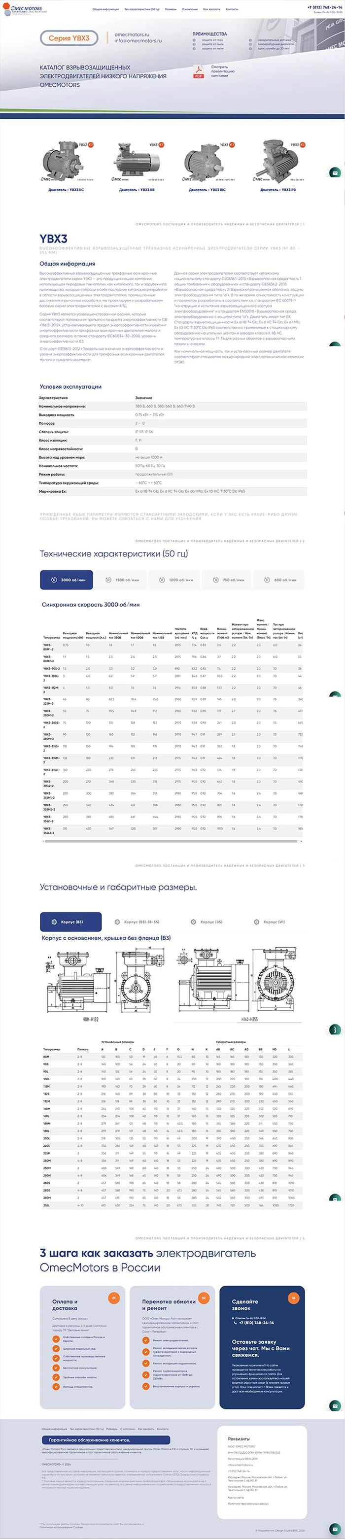 - Описание: Лендинг представляет широкую линейку электродвигателей категории YBX3