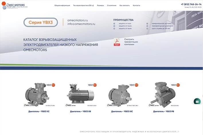 - Описание: Лендинг представляет широкую линейку электродвигателей категории YBX3